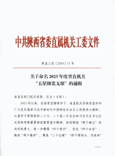 陕西省民政厅7个党支部 荣获 “五星级党支部”荣誉称号